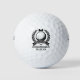Celebrate your big day with a personalized monogrammed golf ball designed especially for your wedding crew. This elegant black and white groomsman golf design features a detailed golf ball illustration framed by a symmetrical wreath, symbolizing honor, achievement, and friendship. A small bowtie above the crest adds a refined wedding touch, while a bold banner across the center showcases your custom groomsman’s name. The title “Groomsman” and your wedding date are printed below in clean, easy-to-read text for a timeless finish.