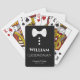 This fun deck of playing cards is designed as a gift for wedding groomsmen. The backs are black with a white bow tie and buttons. The text is white and reads "Groomsman" with a place for his name, the name of the couple and the wedding date. Great gift to thank him for being a part of your wedding party.