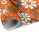 Groovy 70s Retro Floral Orange and Brown Pattern Wrapping Paper