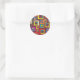 Groovy 70s Tile Pattern Squares On Brown Classic Round Sticker
