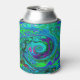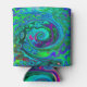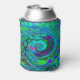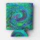 Groovy Abstract Retro Green and Blue Swirl Can Cooler