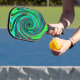 Groovy Abstract Retro Green and Magenta Swirl Pickleball Paddle