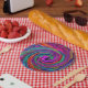 Groovy Abstract Retro Magenta Dark Rainbow Swirl Paper Plate