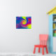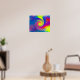 A bright and colourful abstract swirl of colours. The colours can be seen swirling around into a spiral whirlpool. Vivid and bright colours such as yellow, pink, purple and blue.