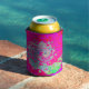 Groovy Abstract Teal Blue and Red Swirl Can Cooler