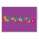 A fun design reminiscent of the 60s hippie "flower power" era. "Groovy" in bright rainbow colours and daisy-like flower flourishes. Inside is blank. Graphics are from realdealclipart.com.