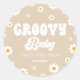 Groovy Baby Daisy Flower Floral Tan Baby Shower Classic Round Sticker