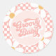 Groovy Baby Pink Check Daisy Classic Round Sticker