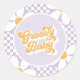 Groovy Baby Purple Daisy Chequered Classic Round Sticker