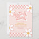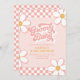 Groovy Baby Retro inspired Baby Shower invitation with 70's style fonts and daisies and chequered pattern.