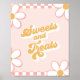 Groovy Baby shower Sweets and Treats sign with pink check and daisies.