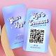 Retro QR Code business card with blue and purple gradient background and groovy fonts. These trendy social media business cards include space for your logo, scannable QR code and contact details. This holographic style design can suit any professional such as nails tech, aesthetician, makeup artist and more! Easily promote your instagram, tiktok, facebook or any other social media with these scannable QR code business cards with nostalgic font.