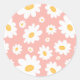 Groovy Blush Boho Daisy Floral Garden Pattern Classic Round Sticker