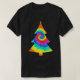I give wanted to give this a 4 instead of a 5 because these Basic DARK T0shirts run unexpectedly SLIM or Narrow. Which is great if you do not have a potbelly, but I have a paunch. It isn't the shirt's fault that I've got a beer belly. The design and shirt itself is a quality cotton shirt. The color is more of a deep purple, but still a very pretty color. The Basic DARK T-shirts run a bit SLIMMER than the Basic Ts. The neck is a fraction narrower (or seems to be narrower) also. I'm a paunchy middle-aged woman and my neck is 12 inches (31cm) thick and the neckline fell about the same as in the photo of the man, and I had the desire to tug it a bit. So if you're a thick necked man or like loose shirts, be aware these are slimmer shirts. Once I get rid of my lockdown paunch it'll look great. The shirt washed well in cold water with no apparent bleeding. We don't have a dryer, so it hung dry. Did not shrink. Love the colors and the design. The design looks smaller on my shirt than it does on the model on-line. But still, it looks good on the shirt. The printing looks as it does on the model, just the size seems fractionally smaller. Washed garment in cold water, hung dry and design appeared unaffected.