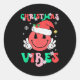Groovy Christmas Vibes Smile Face Santa Hat Xmas T Classic Round Sticker