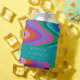 Groovy Colourful Green Purple Retro Wedding Custom Can Cooler