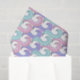 Retro wave pattern in shades of blue, purple and pink set on white background.