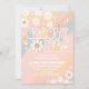 Celebrate your little ones milestone with this retro groovy first birthday invitation! Featuring playful bubble letters, pastel wavy stripes, daisies, peace signs, stars, and whimsical accents, this design radiates peace, love, and fun. Perfect for a 1st birthday party, this customizable invite sets the tone for a vibrant celebration. Personalize with your childs name, party details, and RSVP information to create a unique keepsake guests will adore.