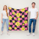 Groovy Daisy Floral Chequerboard, Y2K 90s Fleece Blanket