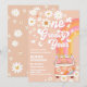 Celebrate your little ones first birthday with this retro-inspired invitation! Featuring a peach background with daisies, stars, butterflies, and a rainbow, plus a flower-power van with peace sign details, it sets the perfect hippie vibe. Playful typography and vibrant colours make it ideal for a nostalgic, fun-filled party theme. A charming way to invite guests to peace, love, and joy.