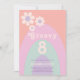 Groovy eight, celebrate her 8th birthday with this cool retro 1970s vintage pastel colours lavender purple, pink, mint green and orange rainbow arch eighth birthday party invitation. With simple daisy design and easy to use templates this custom invite sets the seen for a cool groovy hippie girls party. Original artwork by artist Catherine Sweetman