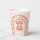 Retro inspired Five is a Vibe 5th birthday party paper cups with hippie style rainbow, daisies and boho fonts and colours.