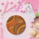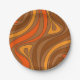 Groovy Flow Retro Abstract 60s 70s Pattern Brown Paper Plate