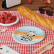 Spooky vibes! Retro groovy Ghost Halloween birthday party plates in blue and orange. Spooktacular birthday bash invite with retro ghost and bats.