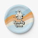 groovy Ghost retro Halloween Spooky Vibes Blue Paper Plate