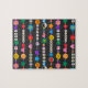Groovy Good Vibes Love Smile Retro Beads Jigsaw Puzzles features a variety of friendship beads with text such as love, peace, happy, smile, good vibes and accented with flowers, butterflies, hearts, stars, yin and yang signs in bright colours. Perfect gifts for Christmas, birthday, best friends, sisters and more. Designed by ©Evco Studio www.zazzle.com/store/evcostudio