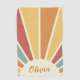 Groovy grunge retro style sunshine design with colourful (orange, pink red, brown, blue) sun rays on beige background for summer lovers. It's easy to change the name and personalise it.