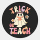 Groovy Halloween Trick Or Teach Retro Floral Ghost Classic Round Sticker