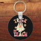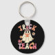 Groovy Halloween Trick Or Teach Retro Floral Ghost Key Ring