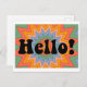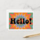 Perfect for Postcrossing, this postcard features a vibrant 1960s inspired background and bold text that says "Hello!" across the front.