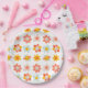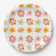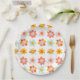 Groovy hippie retro modern fun flower faces patterned paper plates will undoubtedly enchant your guests, suitable for any occasion including lunchboxes, picnics, and BBQs. afternoon tea, and family gatherings. Matching items available include paper napkins. © Julie McIver.