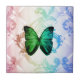 Groovy Hippie rainbow boho teal green butterfly Tile