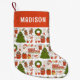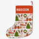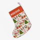 Groovy Hippie Retro Merry Christmas Santa Funny Personalised Name Stockings features a colourful vintage Christmas themed icons such as Santa Claus, Christmas trees, gingerbread people, wreaths, gifts and the text "Merry Christmas and happy New Year" in modern red script typography.Perfect for Christmas gifts and holiday decor. Designed by ©Evco Holidays www.zazzle.com/store/evcoholidays