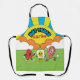 Funny "not today, carbs" keto or carnivore apron featuring a groovy 60s hippie vibe and walking steaks and egg with arms, legs, and faces, perfect for meat eaters.