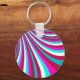 Groovy Hot Pink Teal Rainbow Slide Stripes Pattern Key Ring