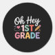 Groovy Oh Hey First Grade First Day Of School 1st Classic Round Sticker