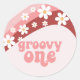 Groovy One Retro daisy boho floral first birthday Classic Round Sticker