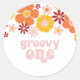 Groovy One Retro Floral 1st birthday Classic Round Sticker