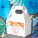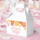Groovy One Retro floral first birthday favour boxes with 70's style flowers and boho fonts and colours.