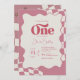 Groovy One Retro Pink Checkered 1st Birthday Invit Invitation