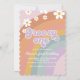 Groovy One Retro Rainbow 1st birthday invite with daisies.