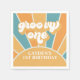Groovy One Retro inspired first birthday party napkins with 70's style fonts and colours.