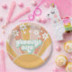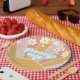 Groovy One Retro inspired first birthday plates with 70's style daisies and boho fonts and colours.