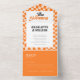 Groovy Orange Chequered Unique Modern Wedding All in One Invitation