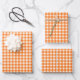 Groovy Orange Gingham Check Pattern Wrapping Paper Sheet