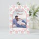 Groovy pink and aqua flowers 70s wedding photo thank you card